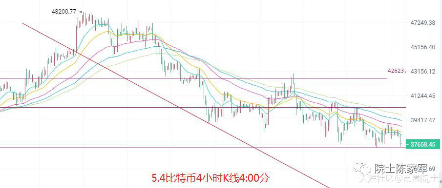 再来看比特币昨日的思路短空为主,低多为辅,目前大盘跌破38000位于37500附近,K线目前跌破周线38100,日K线向下继续冲击支撑点,MACD底背离延续,KDJ向下开口,布林带能否守住下轨,4小时K线布林带向下开口,MACD缩量下行,均线下行力量偏强,1小时K线跳水五连阴,整体趋势偏空,综合各项指标来看,行情短期内偏空,短空为主,低多为辅,下方目标37400-37100-36850,破位看36500,止损300点,下方36500-36000附近布局多,目标看36850-37150-37500,破位看37800,止损300点