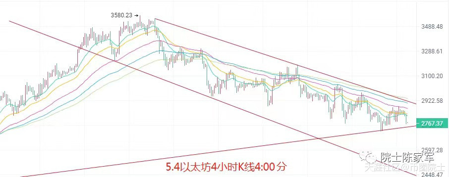 以太坊上周周线已经跌破EMA均线压力位了,日K线底背离一直守住关键点位没有下行,这一次又到2700-2760附近,MACD刚才说了底背离延续,KDJ向下,K线站立布林带下轨。4小时K线距离下轨也剩下30点距离,能不能站稳还是继续下破,在看其他指标,MACD缩量开始,DIF和DEA向下死叉成型,EMA均线下压,1小时K线跳水,MACD缩量加速,趋势跌破布林线,下方支撑点被攻破,空势成型,短空为主,低多为辅,下方目标2750-2730-2715,破位看2680,止损30点,下方2650-2680附近,布局多单,目标看2710-2740-2765,破位看2795,止损30点
