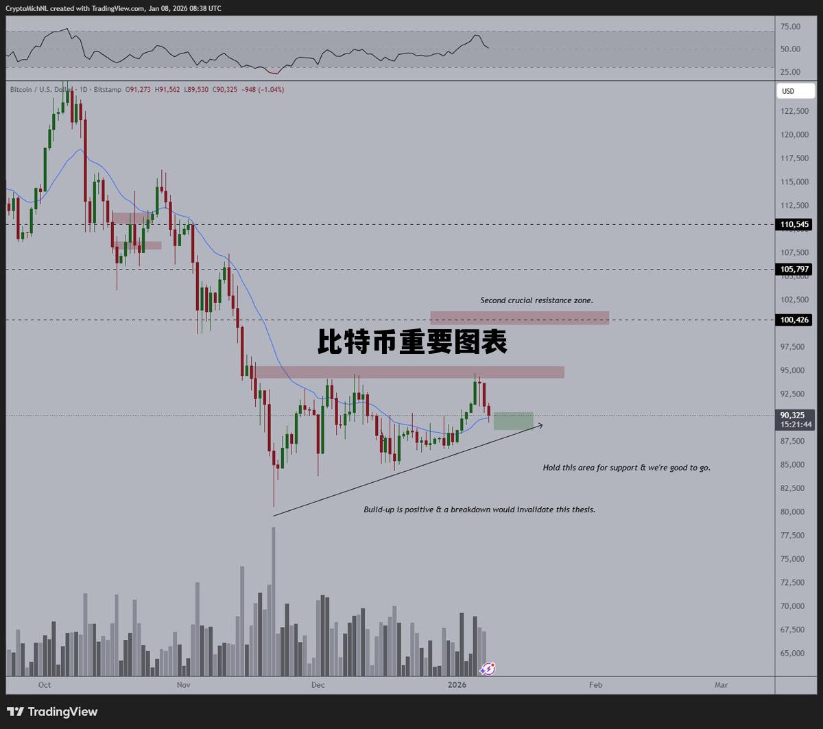 日线图11 万美元支撑定中期趋势,116 万美元阻力压多头比特币BTC在日线图上徘徊在 美元关键支撑位上方,这个位。