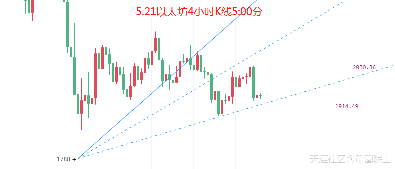 以太坊同样回到了下方速阻线支撑1920附近,短期内还没见底,美盘收盘回调以后短线还有回调的区间,下方重点关注1880-1870支撑,MACD缩量上行,DIF和DEA还没有形成金叉,KDJ向上已经开口,布林带依旧横盘在2000关口附近。