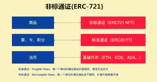 总之,ERC721的Token具有收藏价值的属性;ERC20是标准Token接口,ERC20的Token可以无限细分为10^18份,而ERC721的Token最小的单位为1,无法再分割;