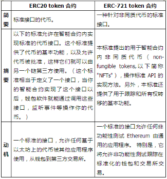 ERC721简要解释是“Non-Fungible Tokens”,翻译为非互换性资产,不可替、非同质的Token, 英文简写为"NFTS",简单理解为每个Token都是独一无二的,ERC 721标准下每份资产都拥有一个uint 256类型的独立编号;