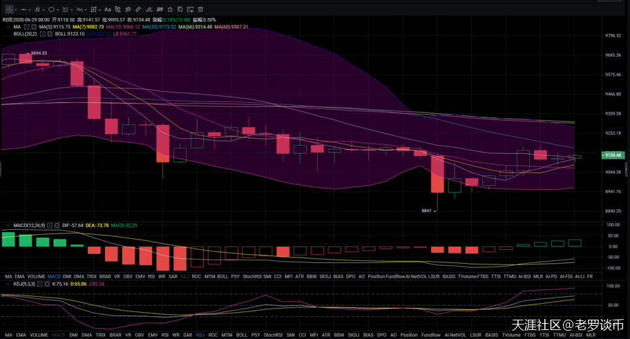 昨日凌晨,比特币价格跌落到9000千下方,达到日内最低点8841位置,随后行情慢慢回升到9000上方,截止到目前,价格运行在9110附近。