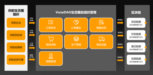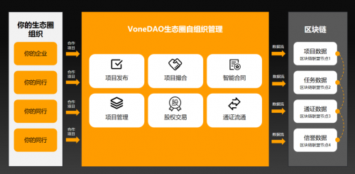 VoneDAO是基于区块链的企业自组织多方协作的管理平台,为企业的分工协作提供一个更为灵活、开放的系统架构。区块链技术的分布式记账、Token激励、智能合约等,将深刻改变企业的激励模式和治理机制,重塑生产关系,引起管理要素的重新分配和组合。