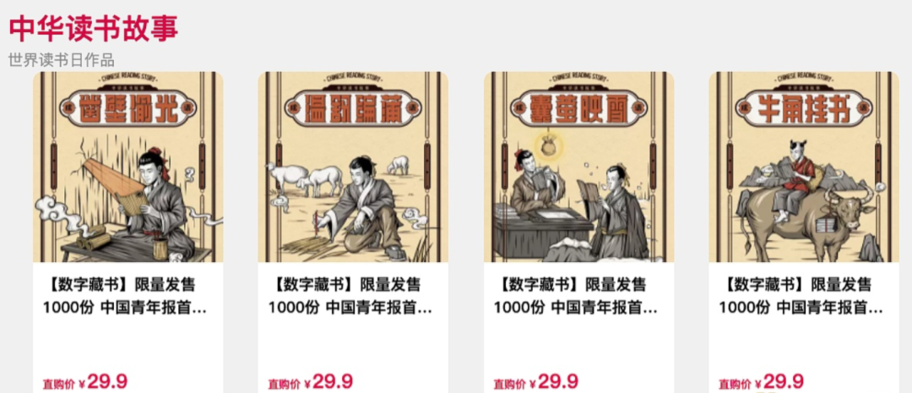 中国青年报社,在第27个世界读书日正式发行数字藏品。据悉,本次发行的“中国青年报2022世界读书日中华民族读书典故系列”数字藏品基于电子书签形式,目前已上线阿里拍卖平台的数字藏品板块,总计6个主题,每个主题限量发行1000份,售价29.9元。